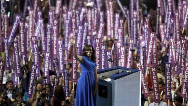 First Lady Michelle Obama also received a rapturous reception for a powerful speech in which she took on Republican nominee Donald Trump.